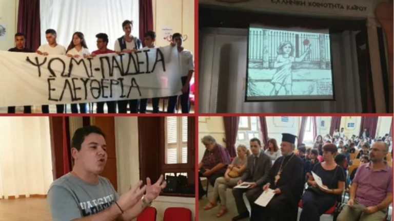 Την Κυριακή το πρωί, στο Κάιρο, στην Αίθουσα “Αρχιεπισκόπου Δαμιανού” της Αμπετείου Σχολής, η σχολική γιορτή για το Πολυτεχνείο επικεντρώθηκε στα ποιήματα που αναφέρονται στην εποχή και σε δύο θεατρικά δρώμενα, ενώ ακούστηκαν τραγούδια της περιόδου και προβλήθηκαν βίντεο από εκείνες τις ημέρες.