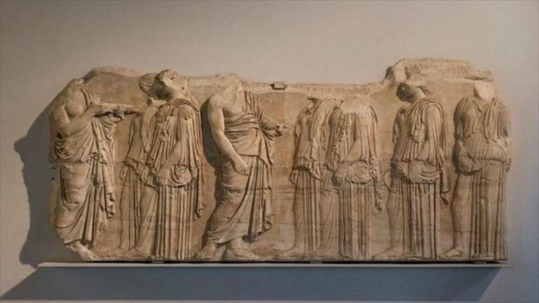 Η συγκεκριμένη μετόπη, εξηγεί η αρθρογράφος, είχε ανακαλυφθεί από έναν Γάλλο διπλωμάτη στον Παρθενώνα και εκτίθεται στο Λούβρο από το 1798.