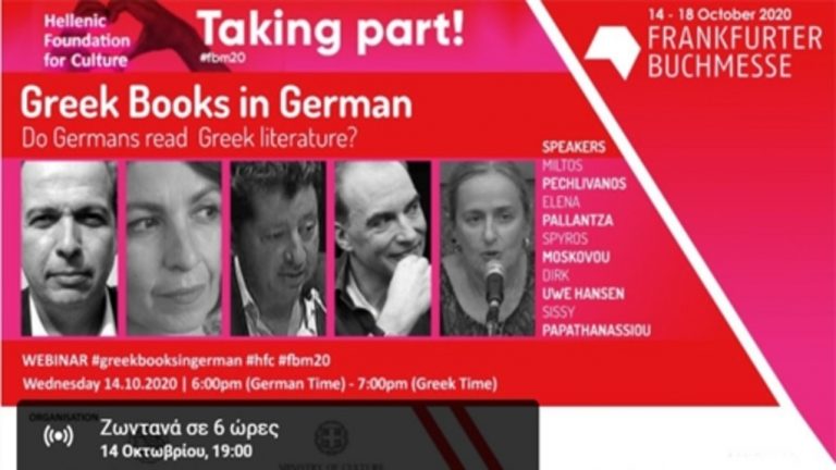 Το Ελληνικό Ίδρυμα Πολιτισμού και η Διεύθυνση Γραμμάτων του ΥΠΠΟ, αξιοποιώντας τις δυνατότητες της τεχνολογίας παρουσιάζουν στο διεθνές κοινό της έκθεσης Φρανκφούρτης δύο διαδικτυακές συζητήσεις με θέμα το Ελληνικό βιβλίο και τη διάδοσή του εκτός συνόρων, με τη συμμετοχή Ελλήνων και ξένων επαγγελματιών και ανθρώπων του βιβλίου.