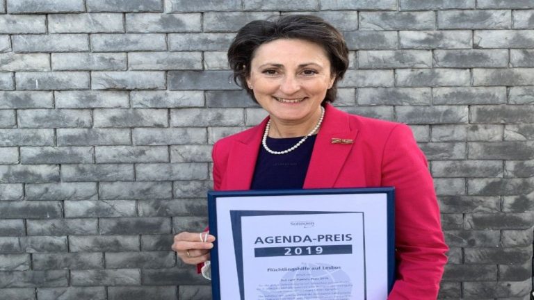 Για την μακροχρόνια ανθρωπιστική βοήθεια στην Λέσβο απονεμήθηκε στην Ιωάννα Ζαχαράκη, στον σύζυγο της Κωνσταντίνο Ελευθεριάδη και στο Διακονικό Ίδρυμα Solingen το βραβείο του δήμου Solingen: “Agenda 2019″ το Σάββατο 19 Σεπτεμβρίου 2020.